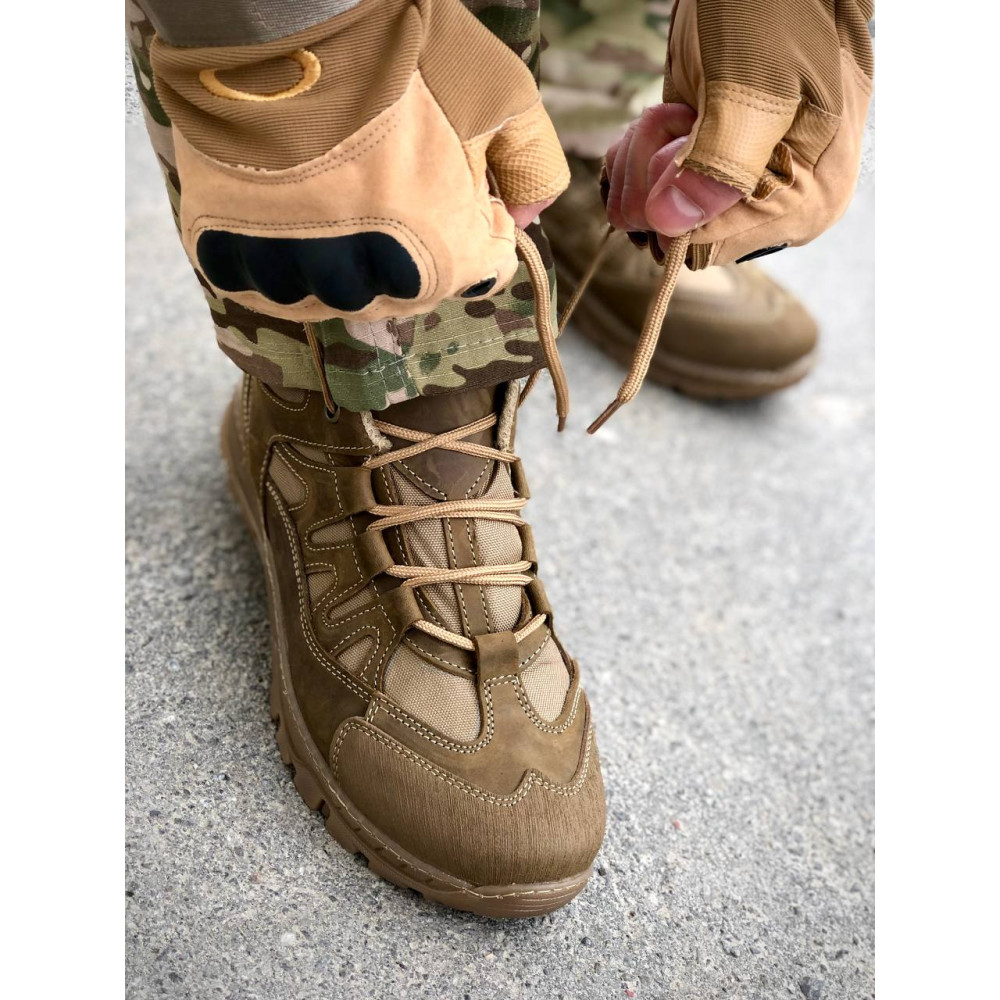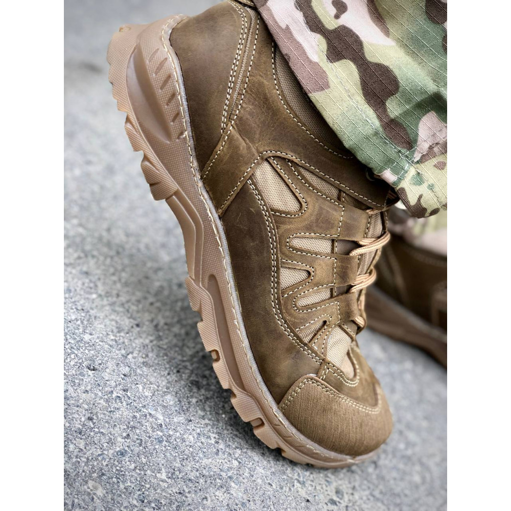 Верх - виготовлений з натуральної, якісної шкіри Crazy Horse з текстильними вставками з американської кордури, що дає змогу не пропускати вологу і не боїться впливу води, підтримує всередині комфортну температуру.