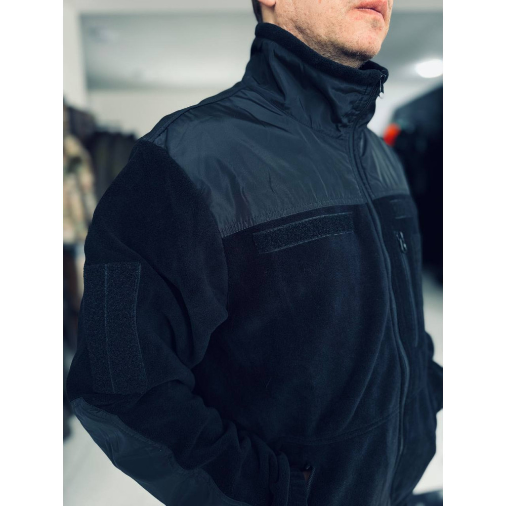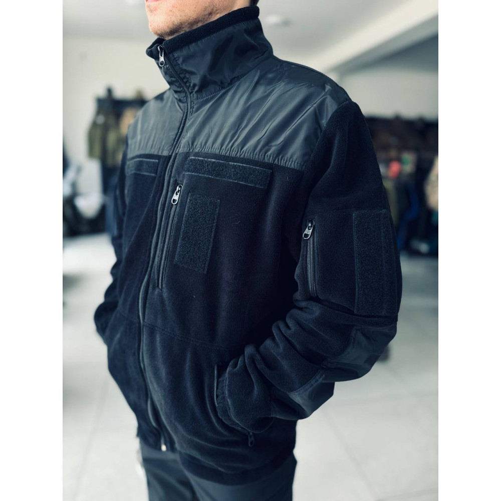 Флісова кофта чорна, хакі олива зелений, синій якості PREMIUM, комбінована плащовою тканиною.