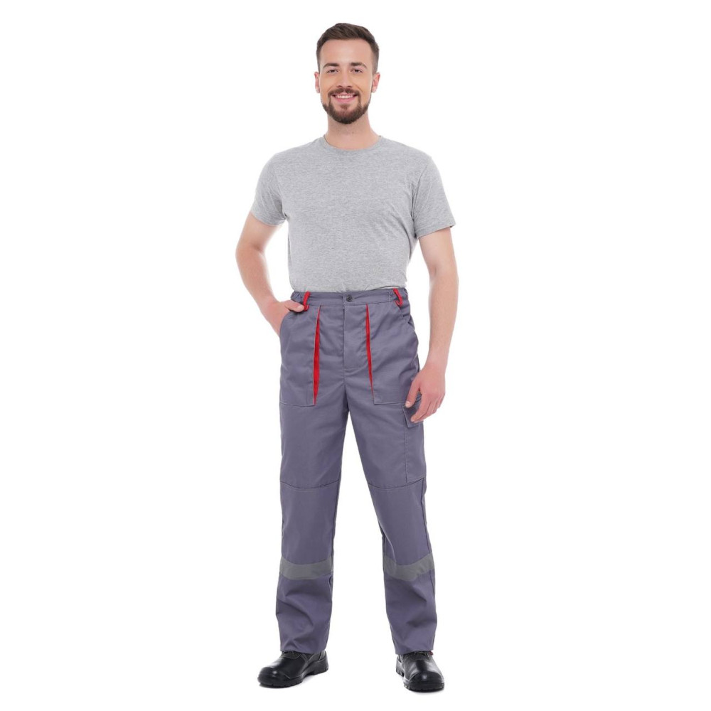Штани робочі весняні літні осінні CARBON виконані в сірому кольорі з червоними вставками.