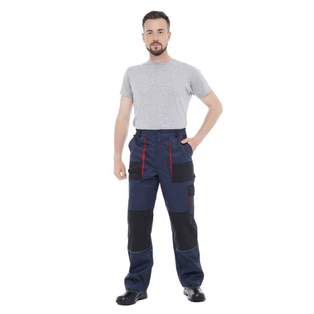Штани робочі УРБАН у темно-синьому виконанні з червоними вставками і світловідбивними елементами.