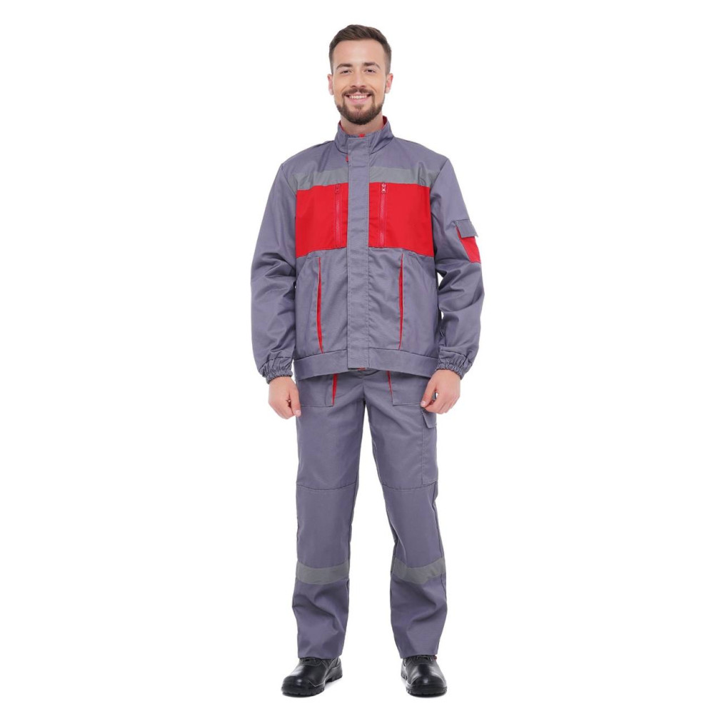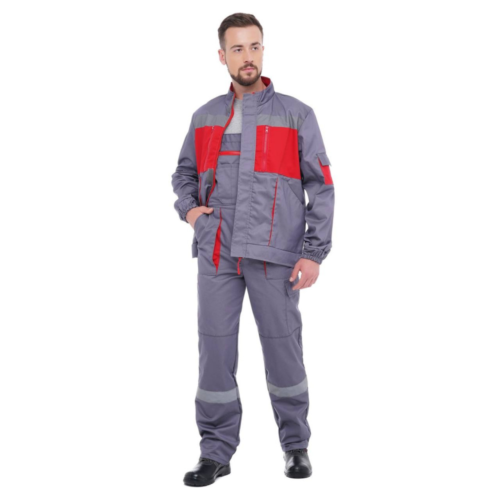 Куртка робоча весняна літня літня осіння CARBON виконана в сірому кольорі з червоними вставками.