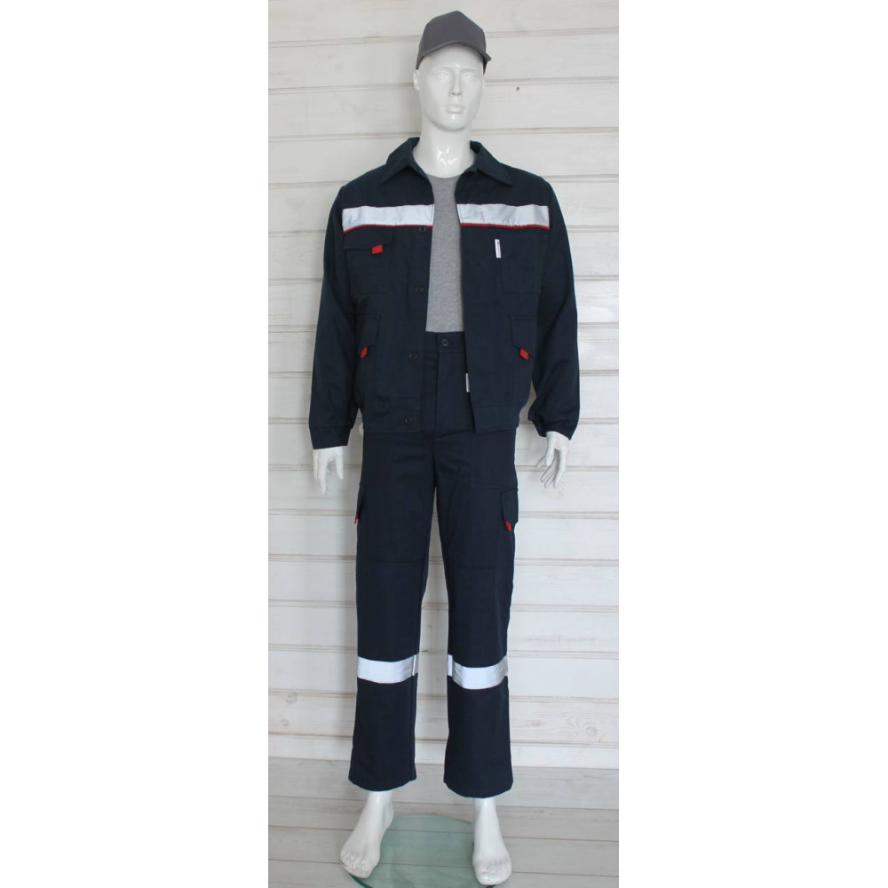 Робоча куртка має тонку оздоблювальну вставку, червоного кольору по зрізу кокетки, а також на клапані.