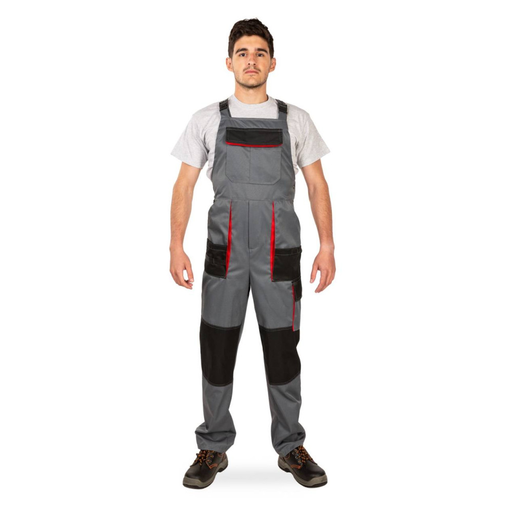 Напівкомбінезон робочий ЕКСПЕРТ МАКСІ сіро-чорний з червоними вставками.