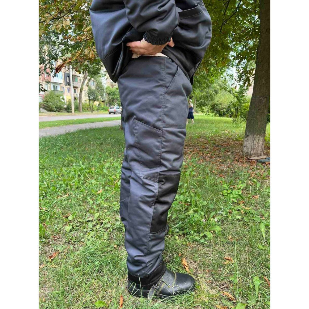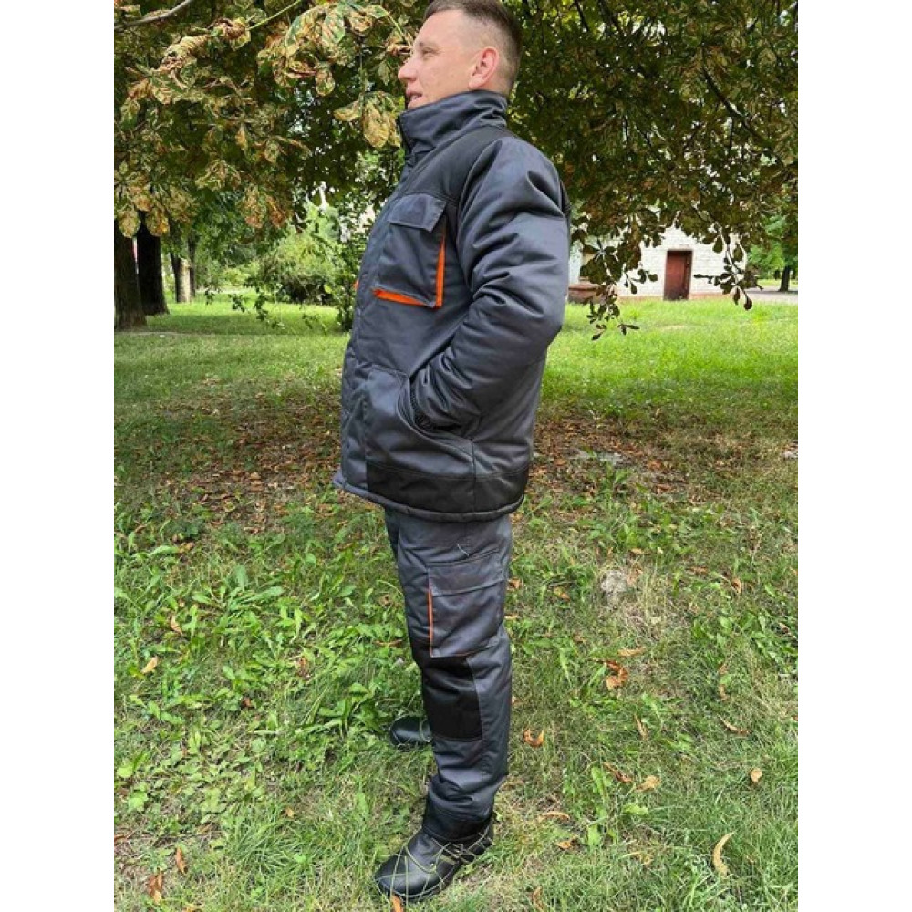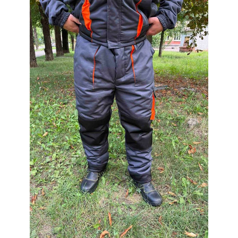Штани захисні зимові утеплені синтепоном робочі, комбіновані трьома кольорами - сірий графіт, чорний і помаранчевий.