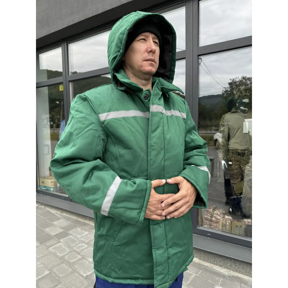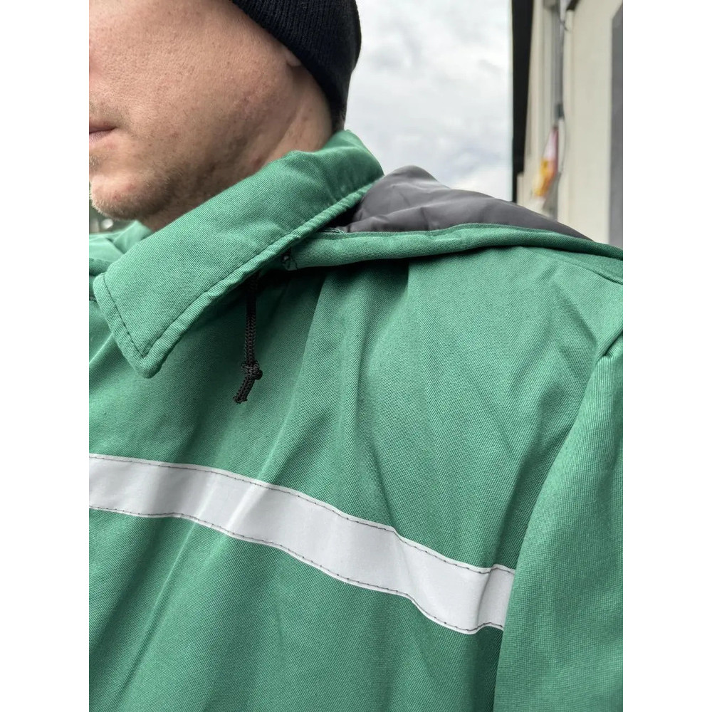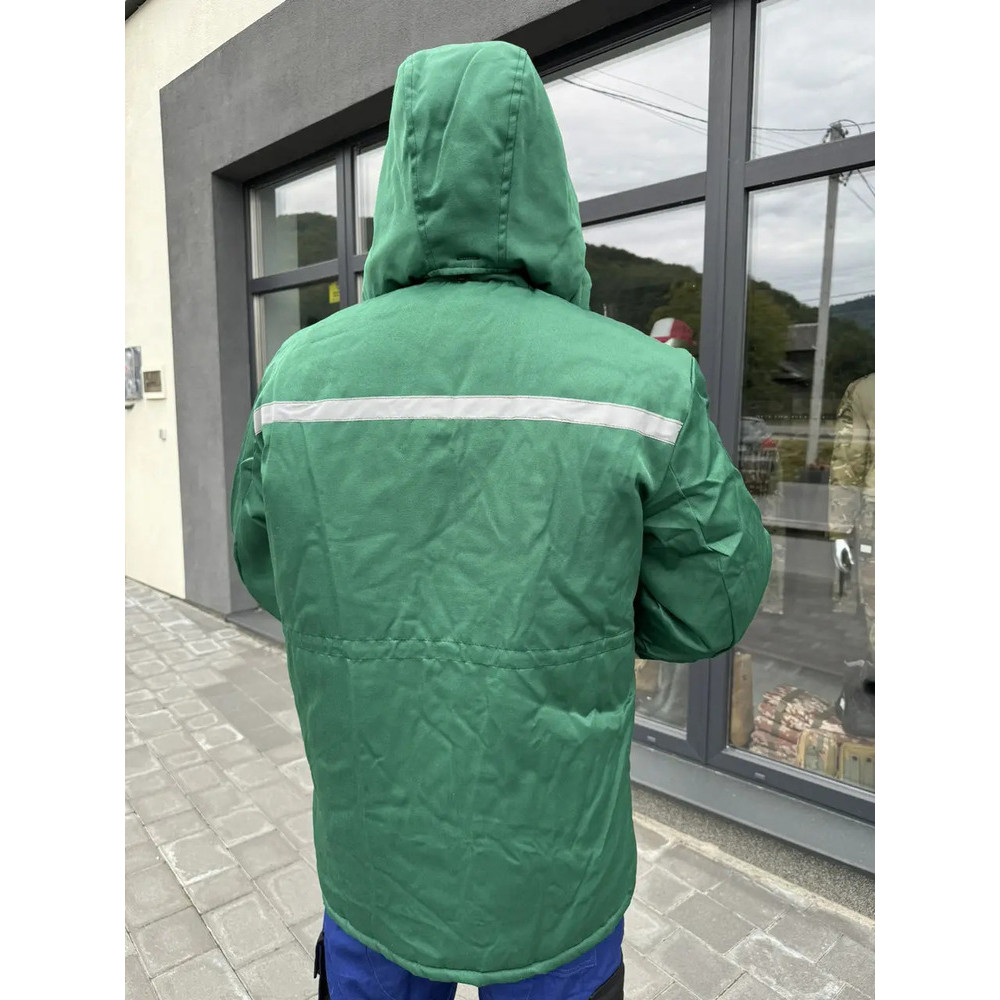 На спинці, рукавах і поличках настрочені горизонтальні світловідбивні стрічки.