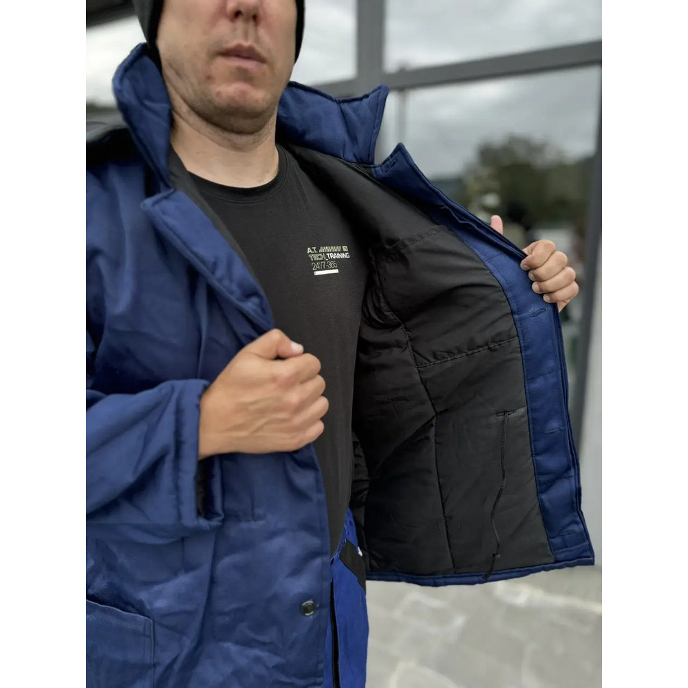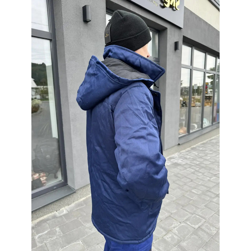 Капюшон утеплений синтепоном, кріпиться за допомогою ґудзиків. На поличках бічні накладні кишені з клапаном.