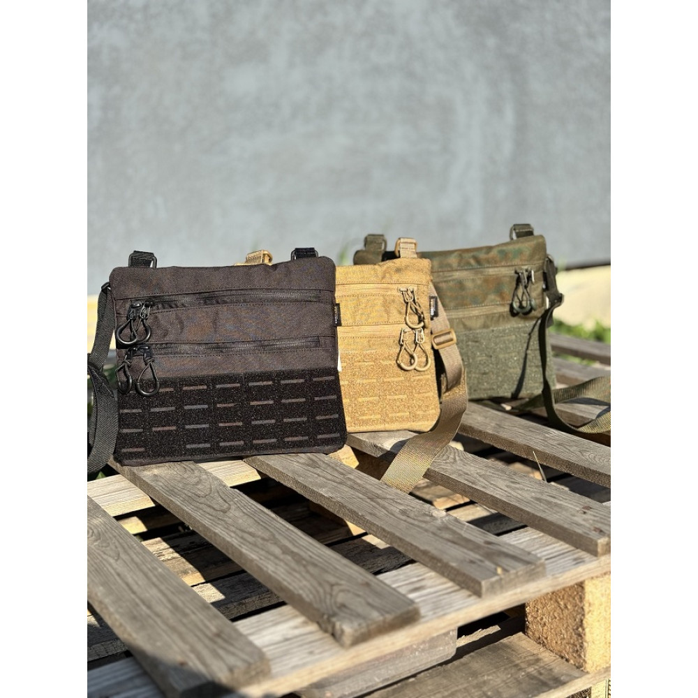 Плоска сумка з відділеннями під документи 27×22 см койот хакі-олива чорний